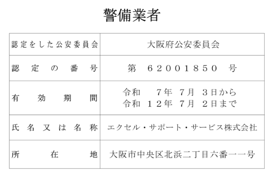 エクセル・サポート・サービスの警備業務は、